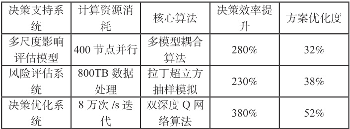 通过表 3 可知,根据高性能计算平台开展 50 万次参数敏感性实验,生成涵盖 108 项指标的动态风险矩阵。部署基于深度强化学习的决策支持系统,在每秒 8 万次策略推演下,预警阈值动态调整准确率提升3 8 % ,应急资源调度方案优化效率提高 5 2 % 。