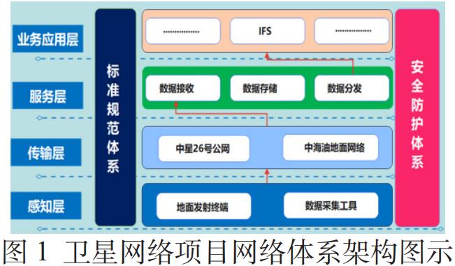 在偏远的井场通过现场采集工具采集数据,借助中星 26 号网络完成数据安全传送,从井场传输至天河陆地服务器。由天河陆地服务器将数据转发至中海油 DMZ 云服务器。将数据输入至中海油内网,存储于中联内网服务器中。在中联内网中进行数据的安全式交互过程,确保得井场中的数据能够通过 RFS(实时可视化决策系统)加以分析和应用。可见下图1 所示: