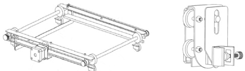 X 方向移动采用同步带实现同步传动,如图 1 所示。电机 1 的输出轴采用同步带与 X 向滑轮连接,X 向滑轮与 X 向滑轨连接,X 向滑轮在电机1 的作用下使其在X 向导轨上移动。