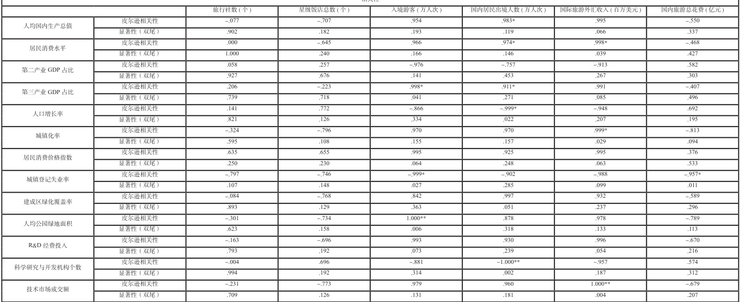 通过对各项环境因素对于文旅产业发展指标的相关性分析结果,可以得出以下结论: