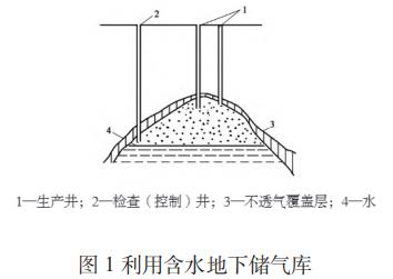 地下储气库主要分为四种类型:利用含水多孔地层储气、利用盐矿层建造储气库储气、利用枯竭油气田储气和利用岩穴储气,图1 为利用含水地下储气库结构图。地下储气库的天然气损耗通常表现在两个方面:一是地质损耗,二是地面系统损耗。地质损耗主要包括由于储层物性条件、储气库注采过程中压力波动及地质构造特征等因素引起的储层气体滞留和不可采回的天然气量,通常表现为永久滞留气和剩余气量;地面系统损耗则主要来源于设备和管道在注采、输送及运行过程中产生的泄漏、放空以及检测维修过程中的气体流失。此外,部分储气库在注采周期交替频繁、工况复杂的条件下,还存在因工艺操作不当或设施老化造成的非计划性排气和微泄漏现象,长期累积后亦构成较为可观的损耗量。因此,天然气损耗具有隐蔽性强、成因复杂、持续性长的特点,若未加以有效控制,可能导致储气库运行成本大幅增加,同时影响储气库的注采调节能力和库容利用效率。