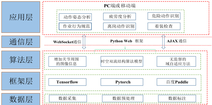 (1)数据层:深入某工厂车间的现场环境实地考察分析,并完成基于该工厂车间员工作业行为的视频数据采集、预处理及标注等工作。