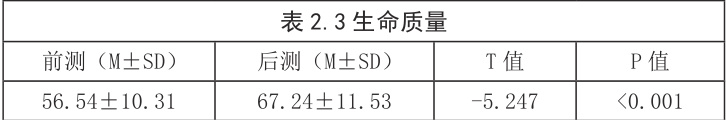 生命质量:使用QOLCS-23 量表,涵盖生理、心理、行为、环境、社会支持5 个维度。