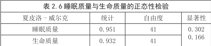 2.1.5 睡眠质量与生命质量的相关性分析注 P>0.05 数据服从正态分布, P⩽0.05 数据不服从正态分布。