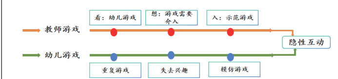 在幼儿游戏时,教师融入幼儿游戏玩乐实践中,具身参与,以同伴、角色或者帮助者等身份与幼儿进行互动。这是提高互动质量,帮助幼儿增强游戏教育价值的关键点。在实施过程中,教师采用“参与式的观察方法”,以游戏为支架,根据游戏的不同需求,教师介入到游戏中进行互动,促进游戏探究有深度。