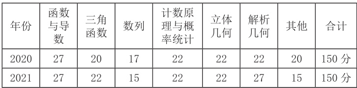 通过以上研究发现,全国新高考Ⅰ卷深入贯彻“五育并举”的方针,将立德树人的育人根本任务融入考试评价过程,凸显高考数学命题的素养立意。试卷与往年比题型结构变化较大,有很多创新之处,但突出主干知识,考点分布均衡,分值稳定,难度适中,注重对四基四能与核心素养的考查,整体上离教材较近,离竞赛较远,这与浙江卷离教材较远,离竞赛较近的风格完全不一样。这就启示我们在平时的教学中,要重视教材,研究教材,并对教材中的例题、练习尤其是解析几何、导数部分做适当的拓展研究,培养学生核心素养的同时引导学生发现数学知识间的内在联系,激发学生学习数学的兴趣。