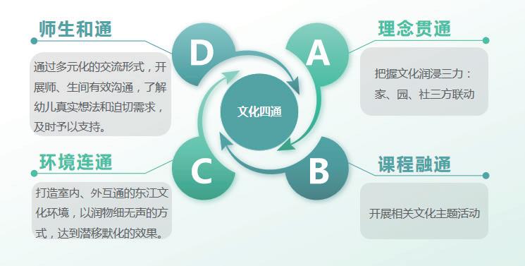 幼儿园通过开展丰富多彩的东江文化活动,并将课程资源进行整合,户外自主游戏区开展的东江文化活动与幼儿园日常教学相结合让幼儿在体验中感受东江文化的魅力,同时促进幼儿德、智、体、美、劳五方面的全面发展,形成“文化四通、五域并举”的“4+5”户外自主游戏实施模式。