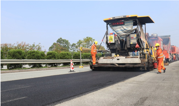 (3)加热再生混合料后,将其输送到摊铺机上,开展摊铺、碾压作业,最终形成新沥青路面。