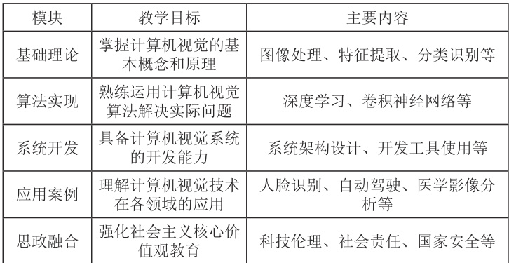 高等教育中,计算机视觉作为人工智能关键分支,已成为培养技术人才的核心课程。但随着科技与社会需求变化,传统教学模式难以满足学生需求,尤其在创新与实践能力培养上力不从心。探索创新教学方法成为教育者的重大挑战。项目化教学通过实践项目提升学习兴趣与能力,而思政教育融入专业课程可增强学生思政素质、社会责任感与使命感 [1]。本文旨在研究计算机视觉课程中项目化教学与思政教育的融合路径,探索课程设计策略并评估教学效果。
