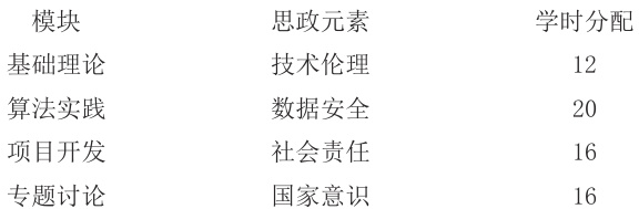 觉技术在国家安全、社会发展等方面的应用。此外,还特别设置了专题讨论环节,鼓励学生就技术伦理、数据安全等议题进行深入探讨 [9]。表 3 各模块融入的思政元素