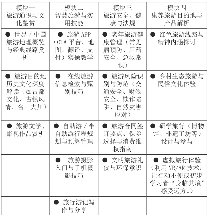 三、老年大学适老型旅游课程体系的构建