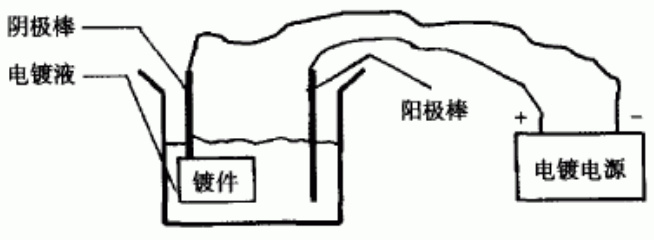 电镀是一种电化学法,也是一种氧化-还原反应,其原理是以一种以金属盐为阴极,以金属片为阳极,通过直流电作用于工件表面,使工件表面形成相应的镀层。如图所示:
