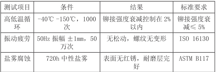 为了更好地保障上述制造工艺质量,通过高低温循环测试 + 螺纹成型振动疲劳测试 + 盐雾腐蚀检测,最终结果如表 3 所示,表明上述工艺应用通过质量检验,可以解决传统冷镦铆接组件活塞杆“成型裂纹率高、铆接强度不足、模具寿命低”等行业痛点,形成“高精度、高可靠性、低成本”的创新产品。