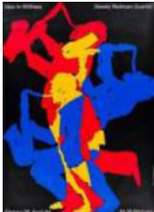 共用法则是一种极具趣味性和创意性的法则,其具体表现在画面中两个或两个以上的图形共用一个部分,这种艺术法则会产生强烈的装饰效果。这种艺术法则所形成的纹样图案形象奇特,构图巧妙。当代的设计艺术创作中,常采用共用法则来提升画面趣味性,(图 4)中,萨克斯演奏者共用一个身子,并以不同的色块进行区分,画面中演奏者的四肢可以任观者自己想象衔接,整幅画面色活泼又灵动。