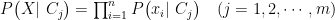 P(HmidX),##H=(C1,C2,…Cm) ,因此可写为:P(Cj|X)(j=1,2,…,m) 按贝叶斯定理,可写成如式所示: