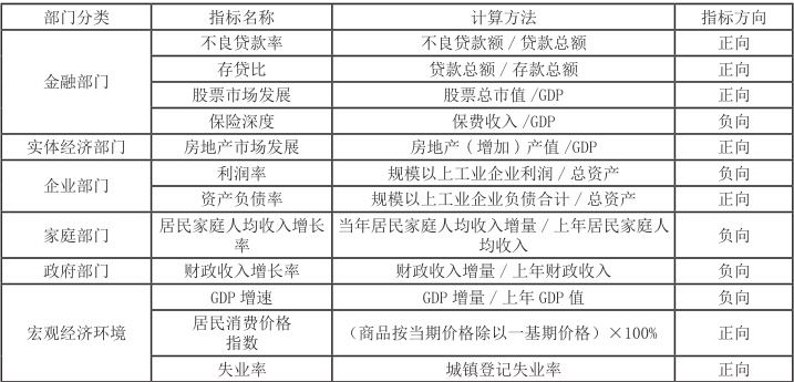 表 1 区域性金融风险指标体系
