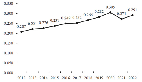 从时间维度来看,全国整体区域金融风险水平在 2012-2020 年间呈现上升趋势。这一时期我国金融市场不断扩张、金融创新加速推进、金融机构业务多元化导致潜在的风险因素也逐渐增多,区域金融风险水平上升。2021 年区域金融风险有所下降,主要是我国央行和政府实施了降准降息、财政刺激等 系列宏观政策,有效缓解了经济下行的压力,稳定了市场预期。同时监管部门加强了对银行表外业务、互联网金融等高风险领域的监管力度,降低了系统性风险。但 2022 年又略有上升,主要是这期间受到地缘政治、疫情等突发因素的影响,对中国经济特别是实体经济造成了极大影响,企业经营困难,导致金融机构不良贷款率不断升高。