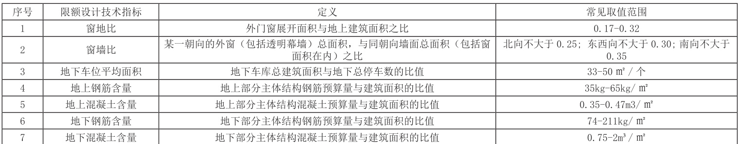 为保证设计成果的经济性而制定的技术上不应突破的限制值,各专业常见的限额指标如下:
