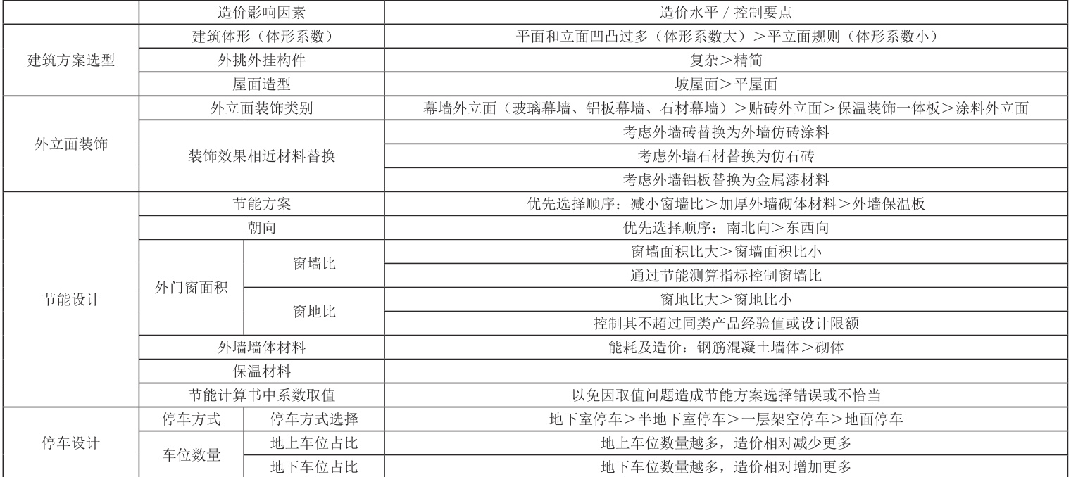 2 建筑专业工程造价影响因素、造价水平及控制要点清单