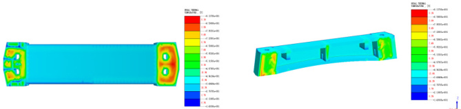 大体积混凝土的水化热受多种热学参数影响, 本文选取四种典型热学参数(风速、环境温度、入模温度和浇筑温度)进行水化热分析研究其对桥塔浇筑 度场及应力场的影响。利用有限元软件进行水化热模拟计算,得出相应的计算结果。各不同参数作用下温度场的总体变化相似,故以风速 15m/s,环境温度 20℃,入模温度20℃为例呈现下横梁水化热温度应力云图如下图所示: