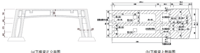 图1 A 型桥塔下横梁示意图(单位:cm)