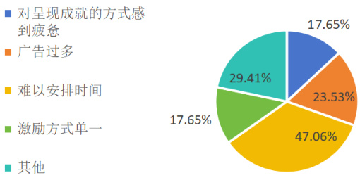 大学生个体自律性差异显著,部分用户对情绪价值的感知能力有限 ( 如将 APP 仅视为打卡工具 ),导致情绪价值难以有效转化。由调查问卷可知,有将近 50% 的大学生放弃使用运动类 APP 的原因是难以合理安排运动时间,而第三方的压力是调查中 66% 的大学生坚持使用运动类 APP 的原因。大学生在学习、娱乐的影响下,难以在非主动意愿运动的情况下扩大情绪价值的感知口径。