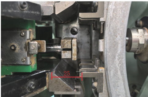 通过盘车观察与测量,五号轮模块边缘至五进六套口折叠导向板的距离大于 25mm(见图 2),而烟包的厚度是 23.5mm。当烟包被推接烟板夹持送至六号轮模盒的过程中,烟包向左移动至折叠导板前 [4],商标纸上下侧边还未完成折叠定型,由于商标纸压痕挺度与压痕深度的原因,同时,烟包脱离五号轮模块的定位,有可能在移动的过程中出现烟包上下偏移,从而导致烟包在折叠成型后出现斜角露白、斜角叠盖、上盖搭盖等现象。