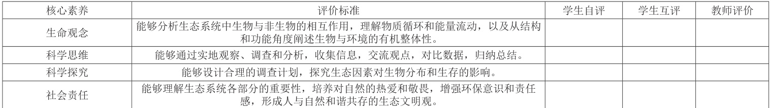 “生态系统”单元可以帮助学生构建对生态系统的全面认识,理解生态系统的组成、功能及其稳定性。通过深入探讨生态系统中各要素的相互作用,学生将掌握以下教学目标: