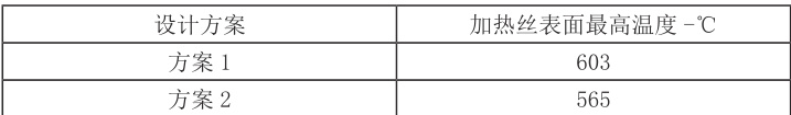 图4.3 方案2 加热丝温度分布云图表4.3 温度汇总表