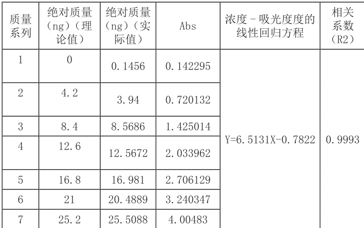 EB(W)E100360,浓度为 0.2±0.02mg/kg 的大米粉标准物质,分别称取 0.02、0.04、0.06、0.08、0.10、0.12g,绘制标准曲线,果如下表