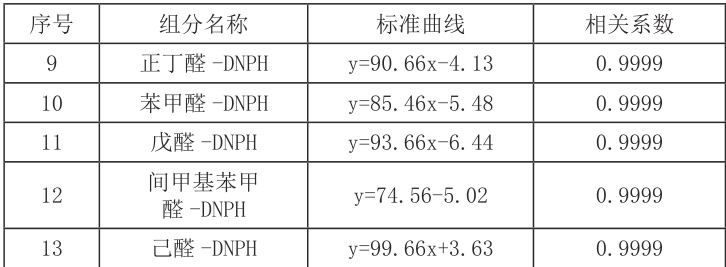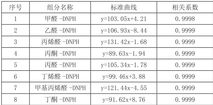 表1 醛酮类标准曲线