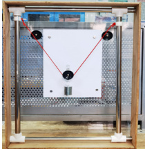 首先将固定钢管支架的上下两横杆分别穿在木框架子两竖板的圆孔里,然后用细铁钉将长 600*450*5mm 的透明亚克力背板钉在木框架子背面,再将2 个定滑轮固定在亚克力背板适当位置上,最后将细线两端分别系在两竖钢管上的塑料水管上。3 装置应用