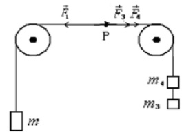 如图 4 所示,一根细线绕过两定滑轮,用颜色笔在两定滑轮之间细线任一点 P 涂上颜色,再在细线两端悬挂质量相同的钩码,会观察到两钩码静止不动,处于平衡状态。则两滑轮中间细线上任一点P 受到绳子两侧的拉力F 与F 为一对平衡力,F1 = F2,由此说明,滑轮之间绳子任意一点所受的力为平衡力,从而得出二力平衡的条件。