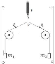 装置设计平面示意图如图 3 所示,设计思想:(1) 定滑轮可改变力的方向,力的大小不变;(2) 砝码的重力满足 G