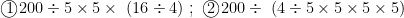 解法三:分除; ①200÷5×5×(4÷16):②200÷(4÷16)