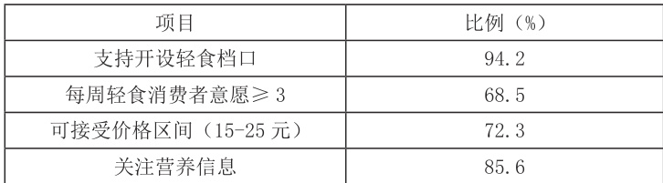 调查显示 ( 见表 1),94.2% 的学生支持校内开设轻食档口,主要动机包括:健康管理(62.3%)、改善体型 (45.7%)、尝试新口味 (38.2%)。