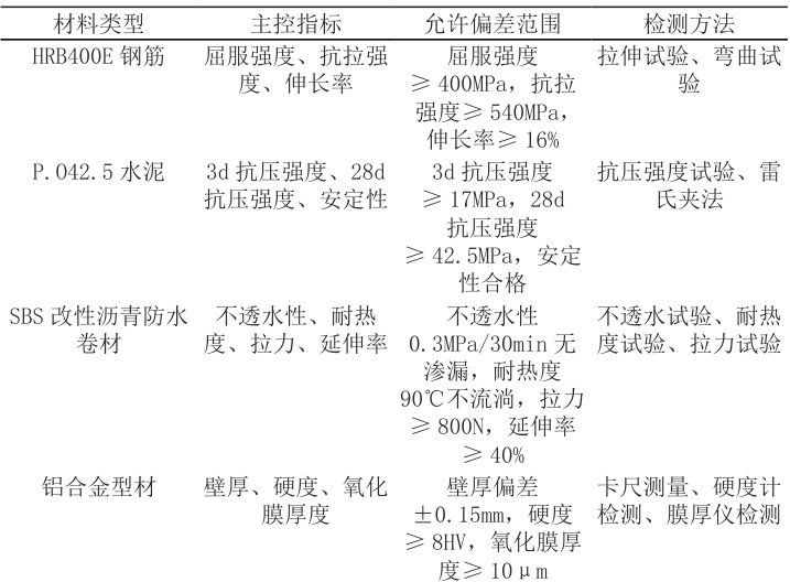 表1 施工材料质量把控指标表