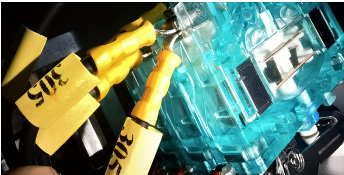 据此可以推断:在故障现象发生时,司机控制器出现了通讯中断的情况,机车控制系统判断“重要节点丢失”,继而采取惩罚制动措施,导致停车。进一步询问值乘司机,司机表示,只记得在故障发生时,自己正在进行车机联控操作,并未留意其它动作,惩罚制动发生后,对机车进行大复位后故障消失。维修人员拆卸司机控制器的电钥匙开关后,发现 305、306 两根线缆之间的缝隙较大(如图5 所示),疑似存在松动隐患。据此断定:司机控制器信号线紧固不良,造成运行时瞬间电钥匙占用信号丢失,引起惩罚制动,是本次故障的主要原因。更换司机控制器后交车使用。