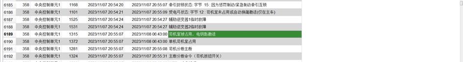 2023 年 11 月 8 日,HXD1B0358 机车因司机控制器故障停车,请求救援。机车入库后,从车载数据中却并未发现相应的故障代码。经深度分析,在 6 时43 分数据记录“司机室被占用,电钥匙激活”,该代码通常出现在机车启动阶段,不会在运行途中出现(如图3 所示)。