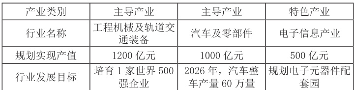 以机械制造业为主的开发区共有“两主一特”三大产业,分别是:工程机械、汽车及零部件、电子信息,产值比重分别为63.8%、20%、9.4%。其中工程机械(主导产业)工程机械总产值约占中国的33%、全球的8.5% ;汽车及零部件制造(主导产业)年产量超 1000 台的车企8 家,电子信息(特色产业)片区产业基础较弱,片区暂未形成产业链上下游[4]。