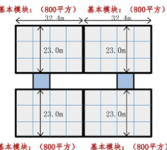 基本模块: (670平方)基本模块: (670平方)40.5m → 40.5m基本模块:(1000平方)基本模块:(1000平方)