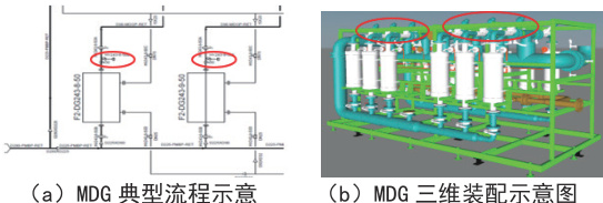 图 13 中的(a)、(b)分别是抛光系统 MDG 的典型流程图和三维装配模型图,红色圈内的就是冲洗口。同样的,对终端UF 等设备都需要设置此类冲洗口,方便更换膜组件后冲洗。