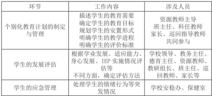 表1 :特殊学生教学管理职责分工