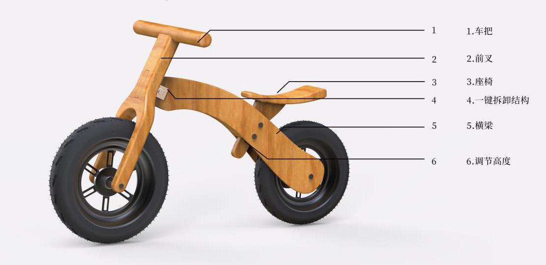 基于 ASD 儿童感统训练需求与行为特征,本设计聚焦 3-6 岁 ASD 儿童,开发了一款模块化、可拆卸式平衡滑步车,通过渐进式训练机制改善身体协调障碍(如图1)。核心设计策略如下: