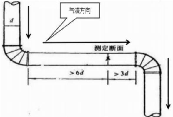 当采样孔在管道的弯头或者变径处时,会影响测量结果。根据流体力学原理,采样断面与管道变径处需要保持一定的距离,弯头上游不小于管道直径的 3 倍,弯头下游方需要和管道保持 6 倍直径以上的距离,即“上 3 下 6”原则。