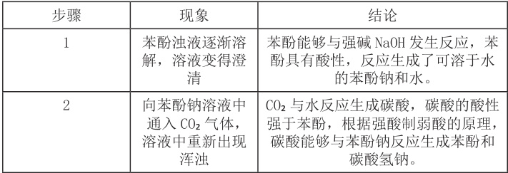 【小组实验】取一支试管,加入适量苯酚浊液,逐滴向其中加入NaOH 溶液,边加边振荡,仔细观察溶液的变化。待上述溶液变为澄清后,将其分装到另一支试管中,向试管中通入 CO2 气体,观察溶液的现象。