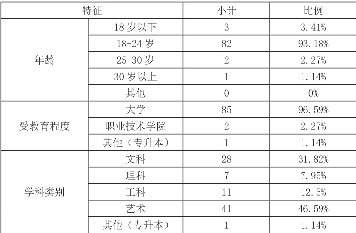 表 1 宁夏理工学院文学与艺术学院学生的多维度特征信息表