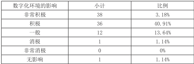 表 2 学生对数字化环境的认知与态度情况表