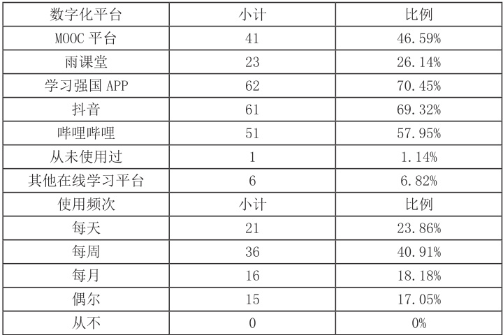 (一)学生对数字化环境的认知与态度