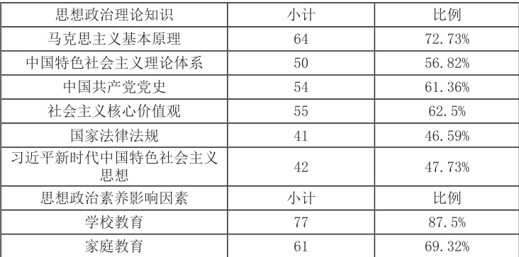 表 4 思想政治素养及影响因素统计表